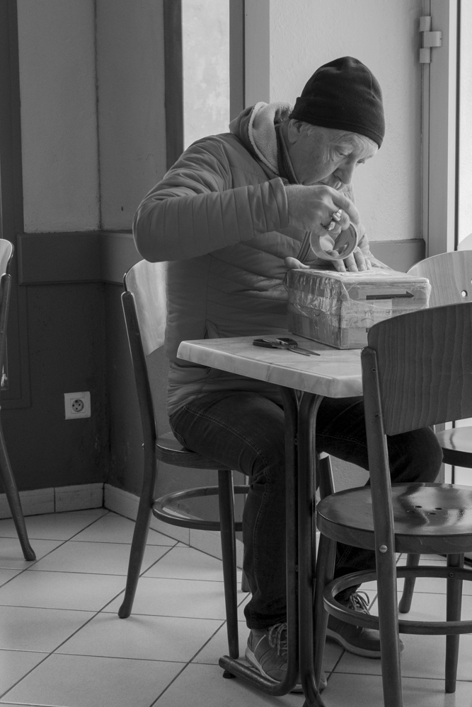 Mon projet est en noir et blanc parce qu’il me semble qu’il aurait pu exister il y a 50 ans comme aujourd’hui. Les habitués se moquent du temps, des gens qui entrent et sortent. Ils viennent à deux ou trois ou seul.