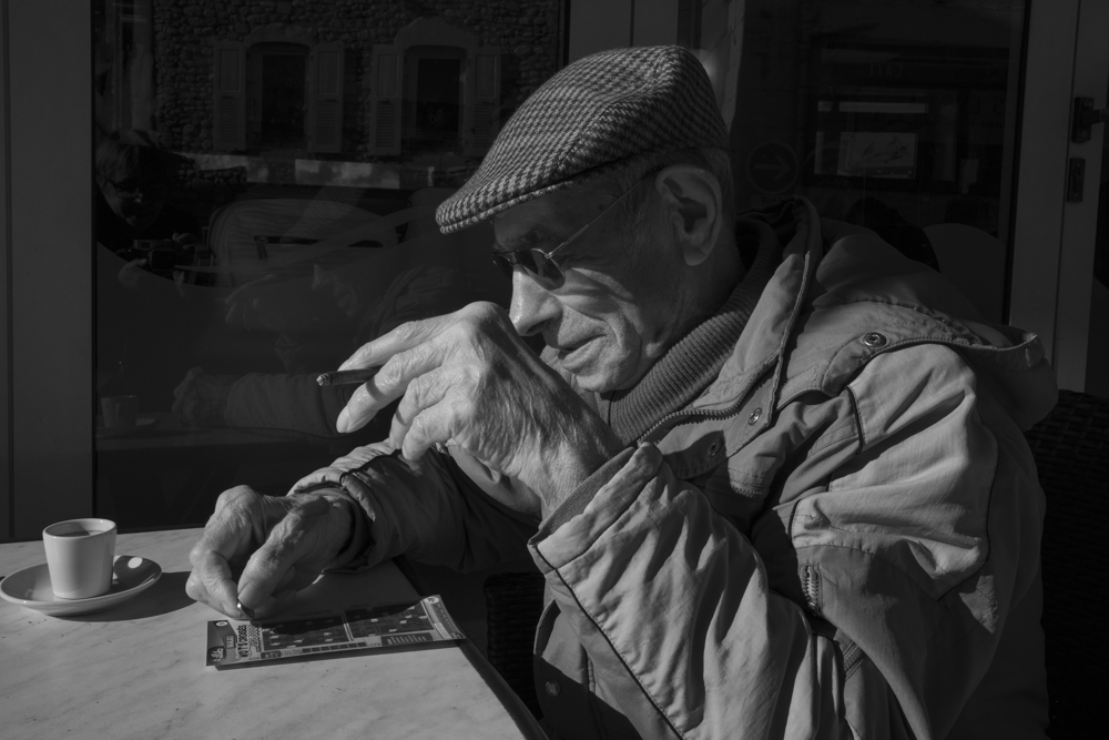 J’ai choisi de m’arrêter dans l’un deux. Un petit bar d’habitués devant lequel je passe bien souvent . Chaque jour les mêmes personnes, à la même heure. Moi je suis là, je bois mon café, je commence à discuter avec les uns ou les autres et quelque fois je prends des photos. Je me sens encore timide et souvent je n’ose pas me servir de mon appareil . Parfois si…